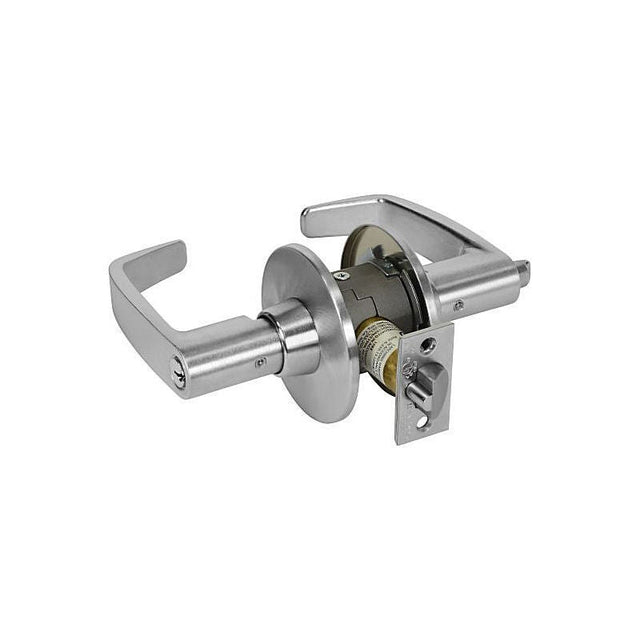 Office Tubular Bored Lock Grade 1 with L Lever with Schlage Prep and L Rose and ASA Strike Less Cylinder Satin Chrome Finish