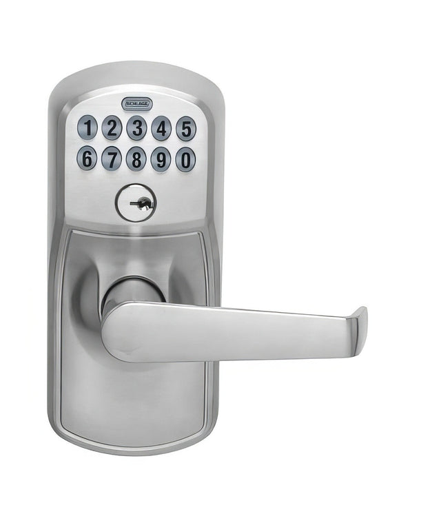Schlage FE595PLY626ELA Electronic Security Keypad Entry Door Lever - Satin Chrome is backordered and will ship as soon as it is back in stock.