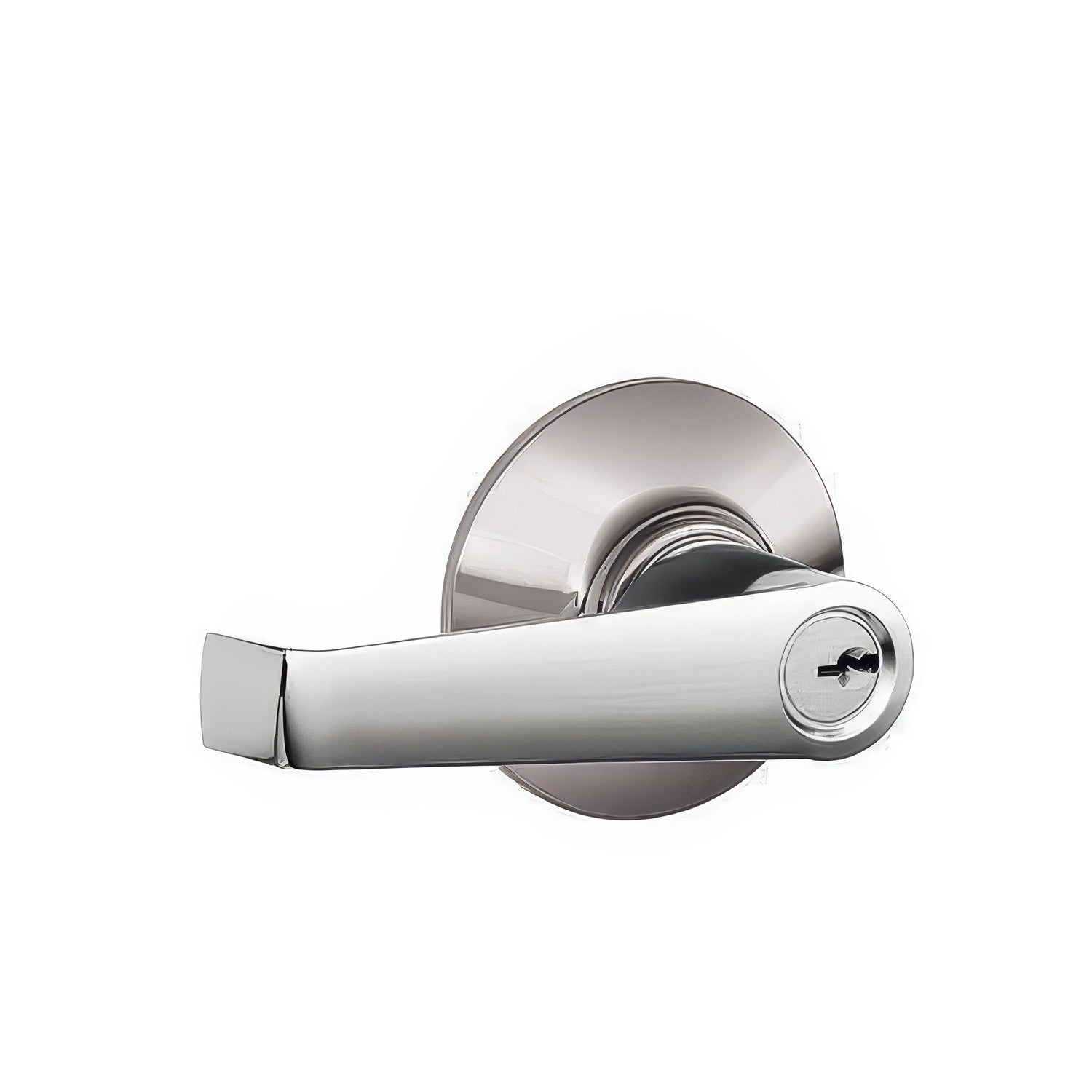 A Keyed Entry door lever is keyed on the exterior and thumb-turn on the interior. A Keyed Entry lever is usually used for a front door, however sometimes they are used in offices.