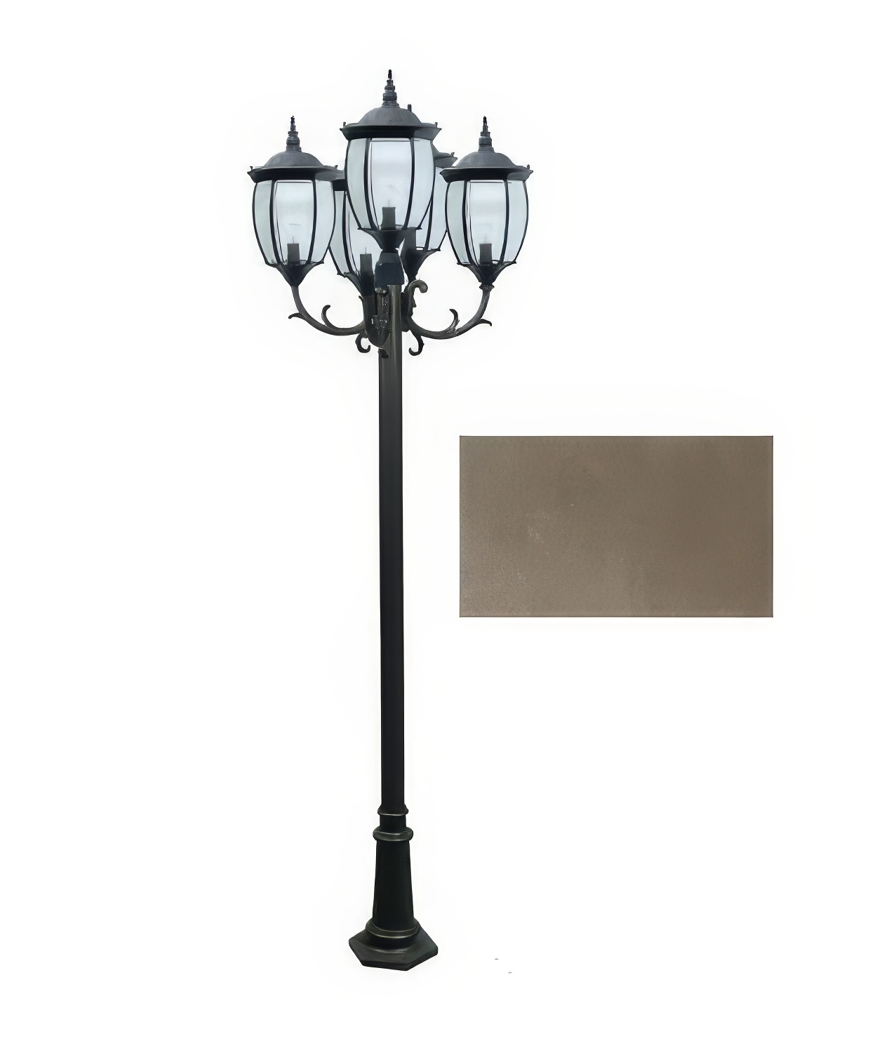 Cast Alum 5 Post Top Fixture Pole + Base 120V E26 5X No Lamp