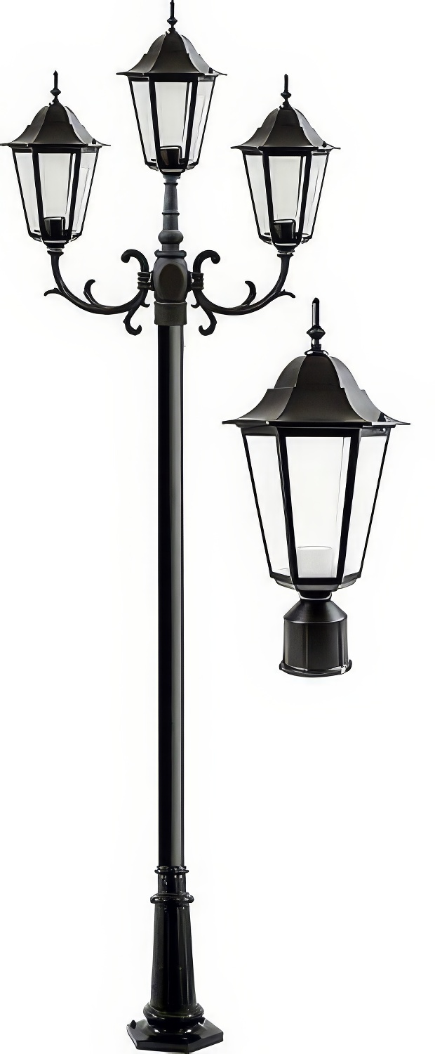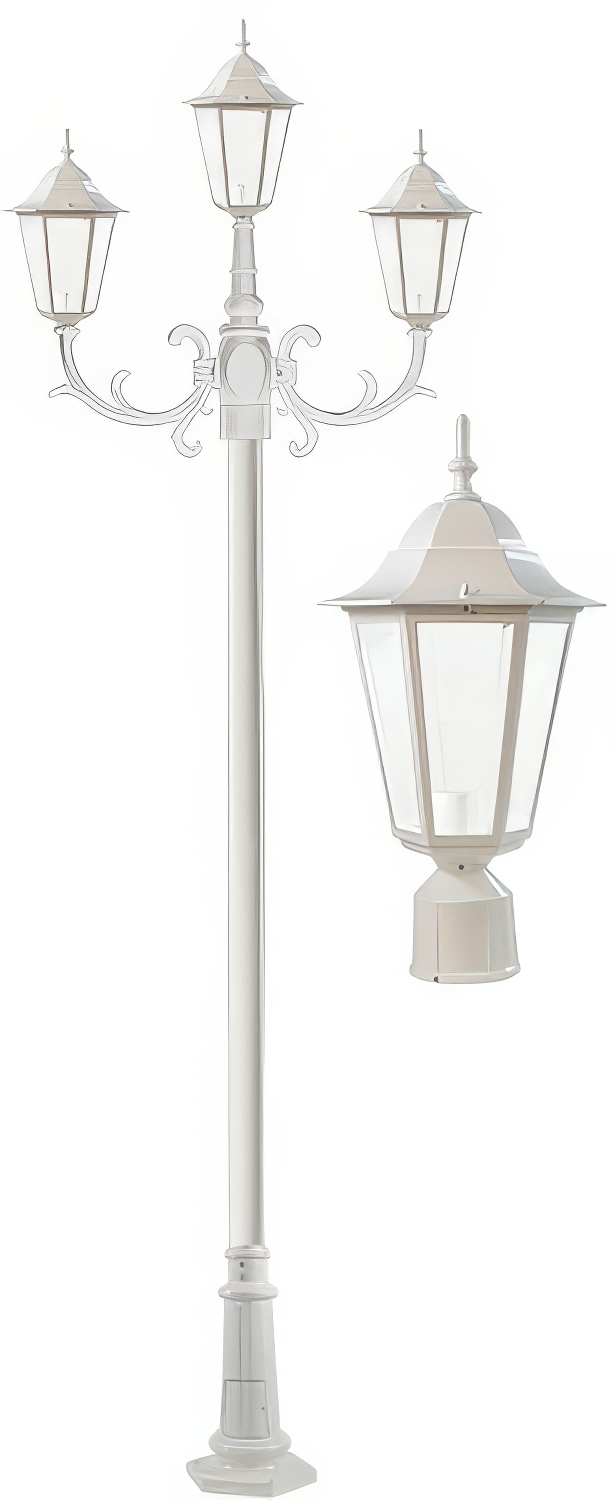 Dabmar Lighting GM1323S-L27-40K-FR Cast Alum 3 Post Top Fixture Pole + Base 120V GU24 3X LED 9W 40K Frost