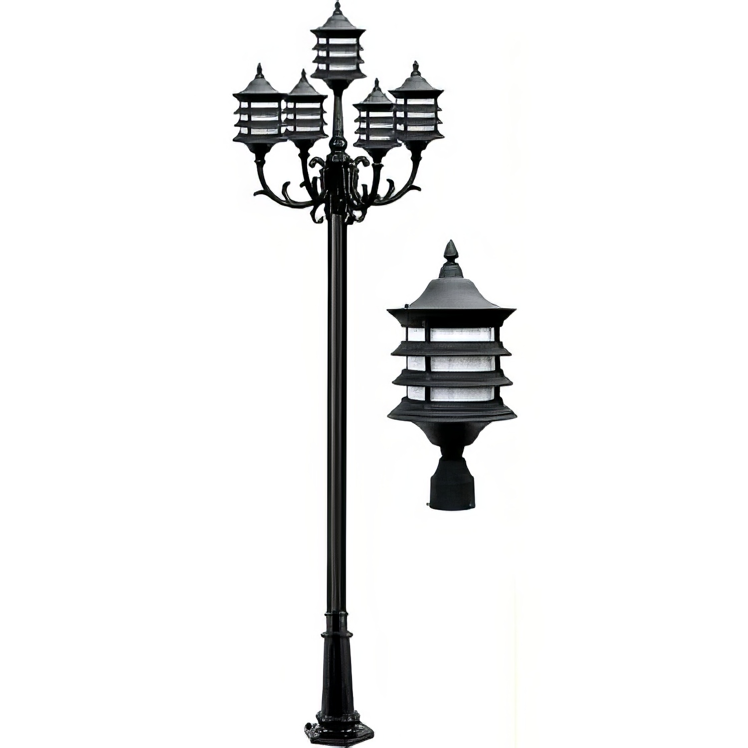 - Durable Cast Aluminum Construction (Base, Pole, and Fixture)
