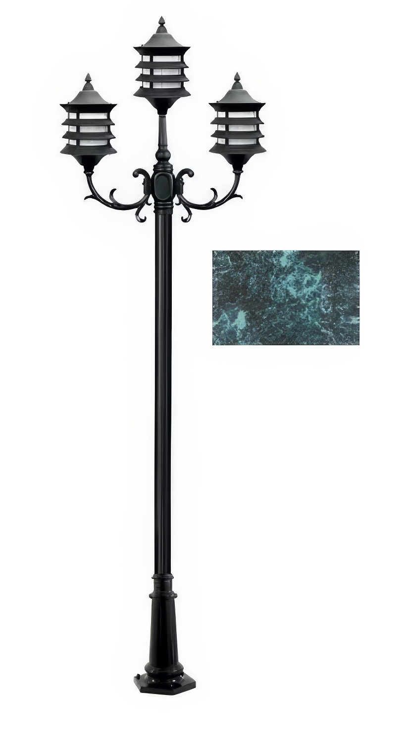 Dabmar Lighting GM1823-L54-65K Cast Alum 3 Post Top Fixture Pole + Base 120V E26 3X LED 18W 65K