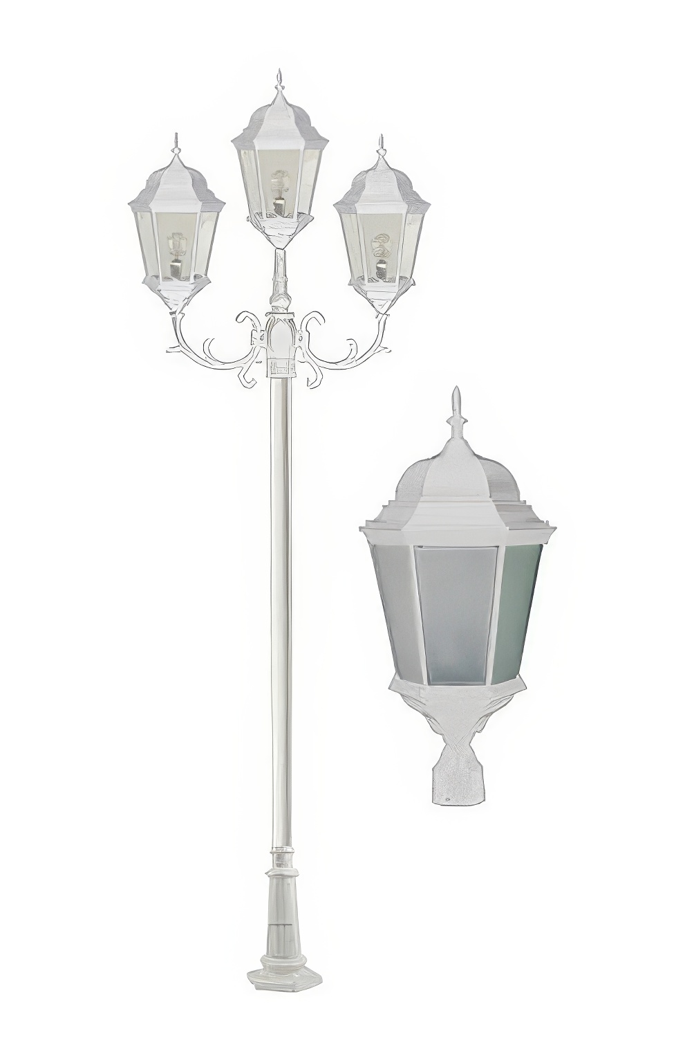 Cast Alum 3 Post Top Fixture Pole + Base 120V E26 No Lamp Frost