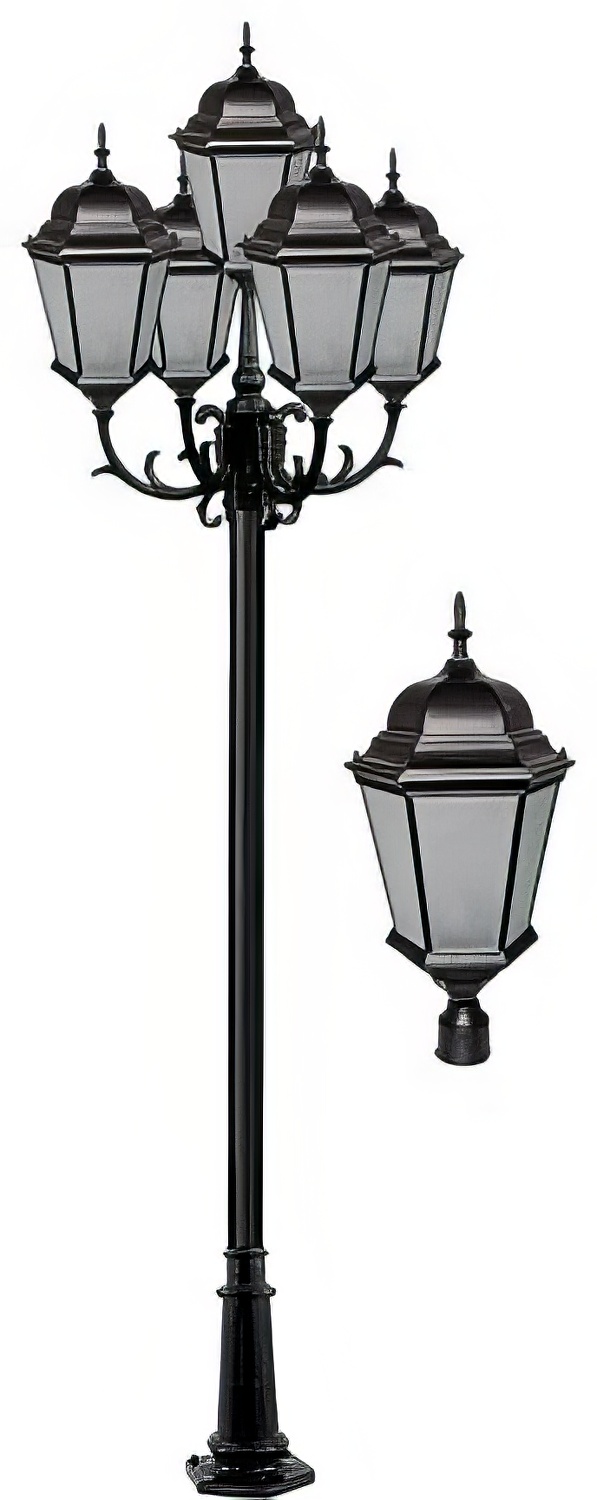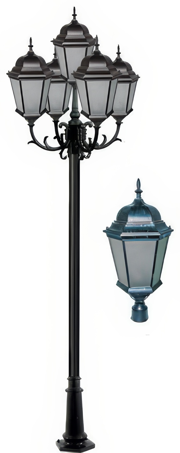 Cast Alum 5 Post Top Fixture Pole + Base 120V-277V G24 5X Led 20W 30K Frost