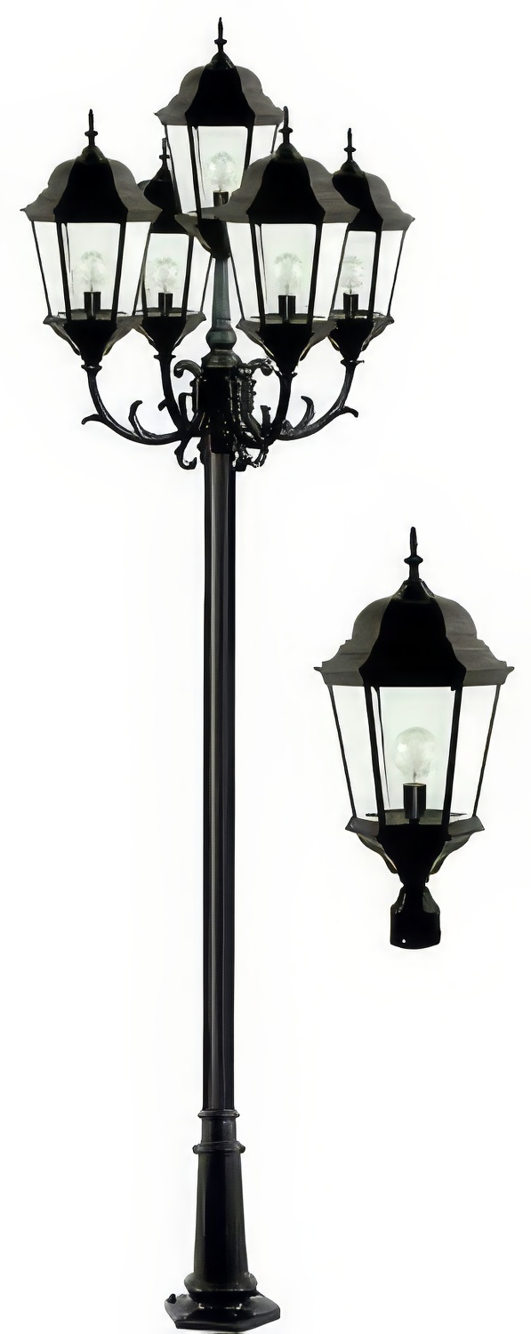 Dabmar Lighting GM2355-L150-65K Cast Alum 5 Post Top Fixture Pole + Base 85V-265V E26 5X LED 30W 65K