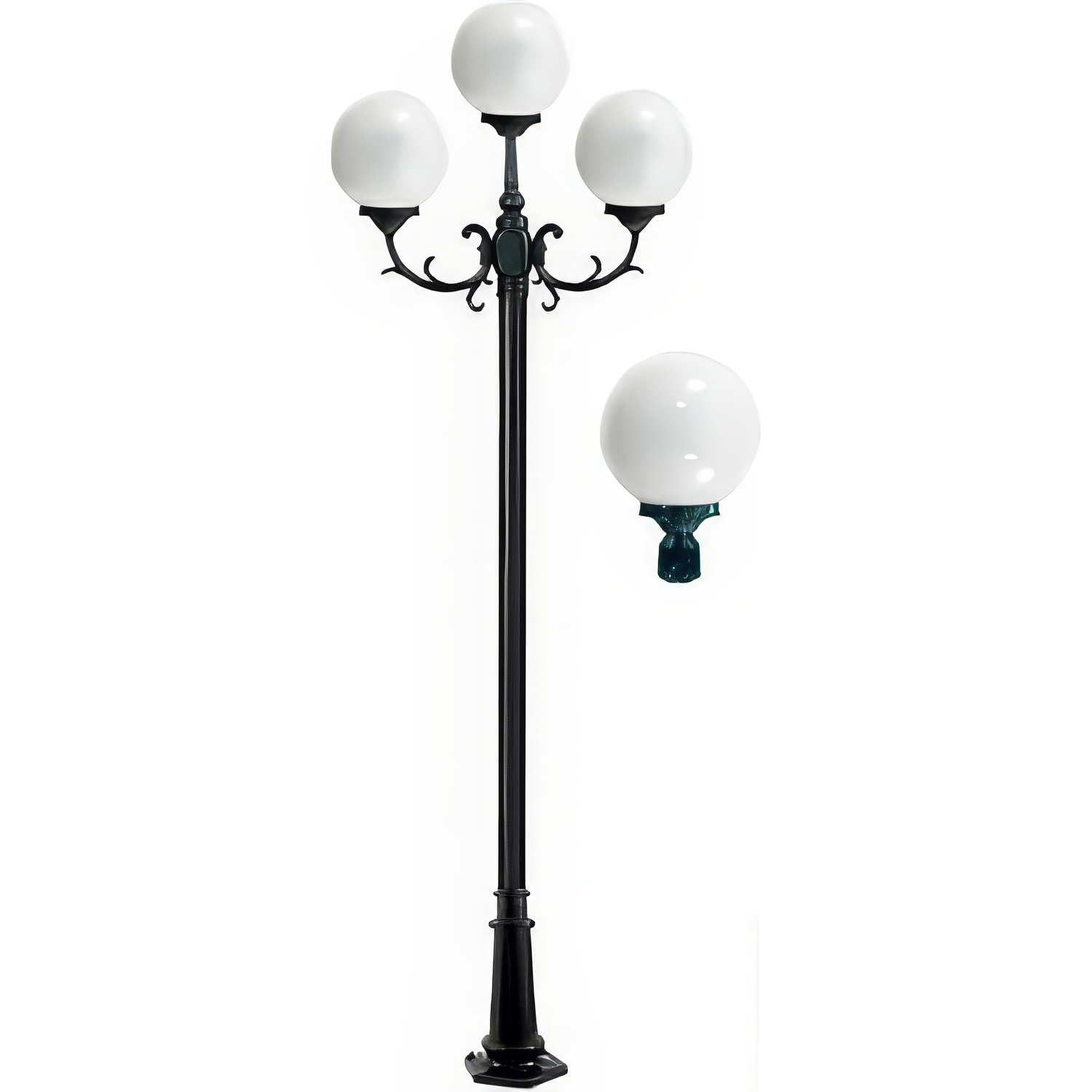 - Durable Cast Aluminum Construction (Base, Pole, and Fixture)