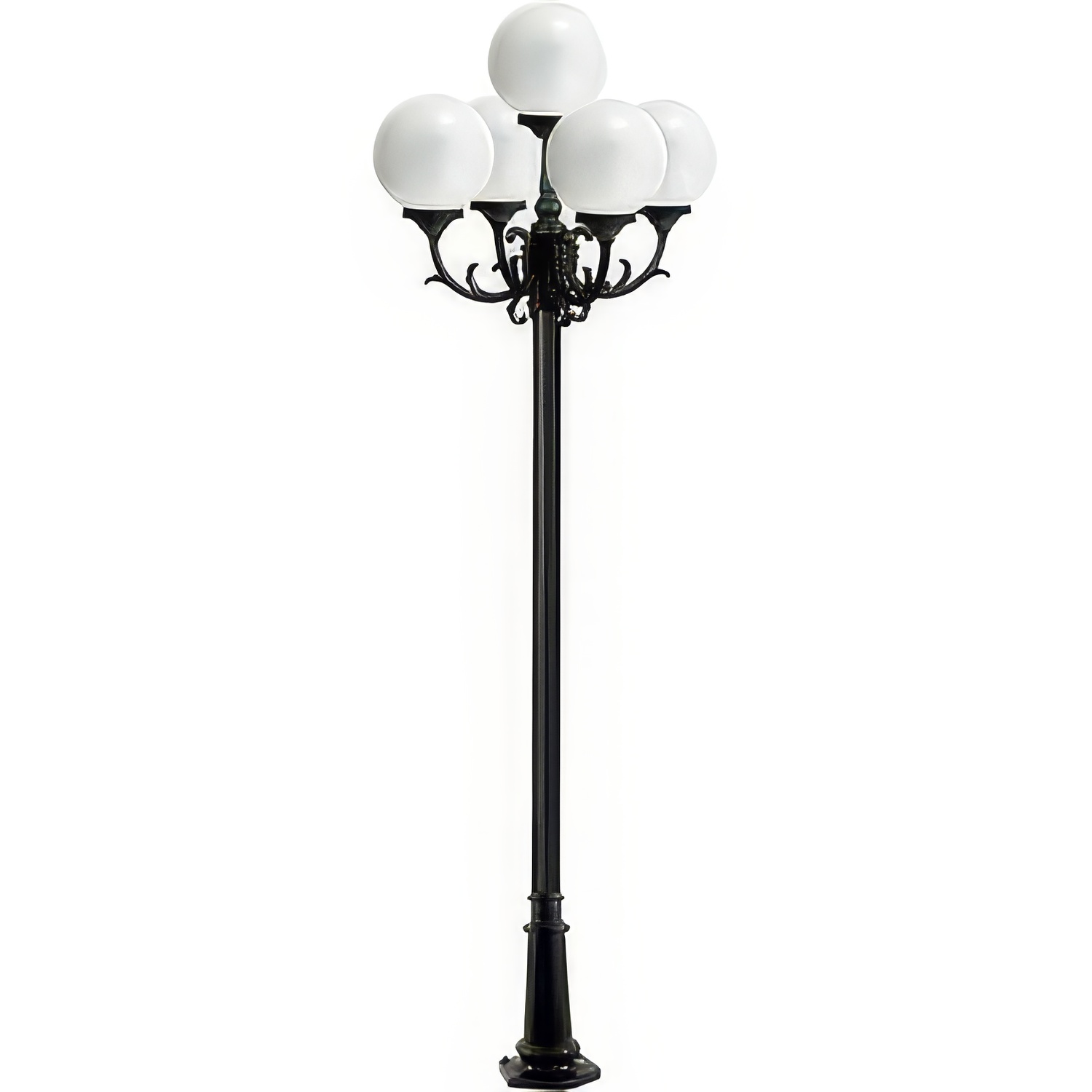 Dabmar Lighting GM2405-L90-65K Cast Alum 5 Post Top Fixture Pole + Base 120V E26 5X LED 18W 65K