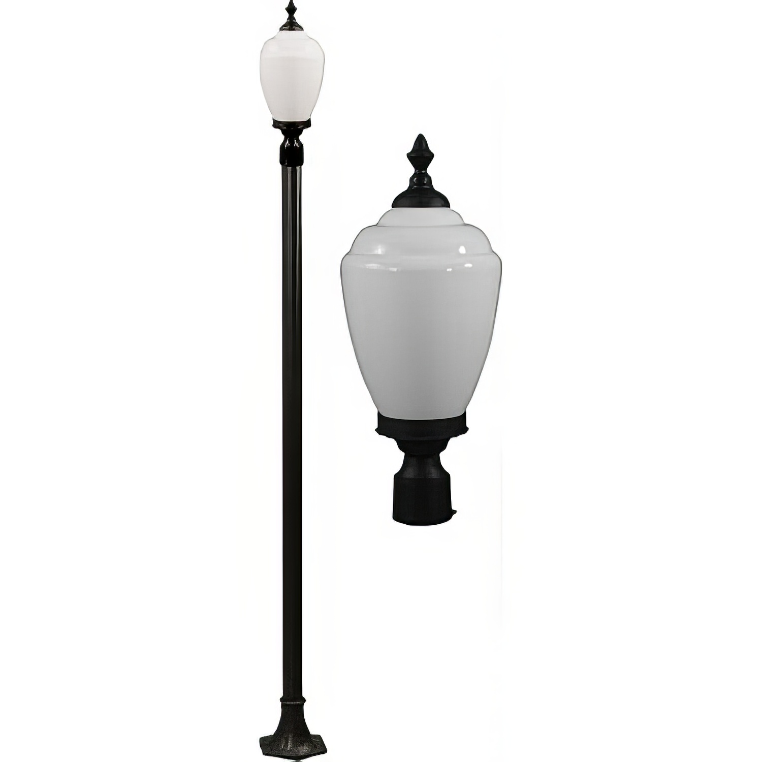 - Durable Cast Aluminum Construction (Base, Pole, and Fixture)