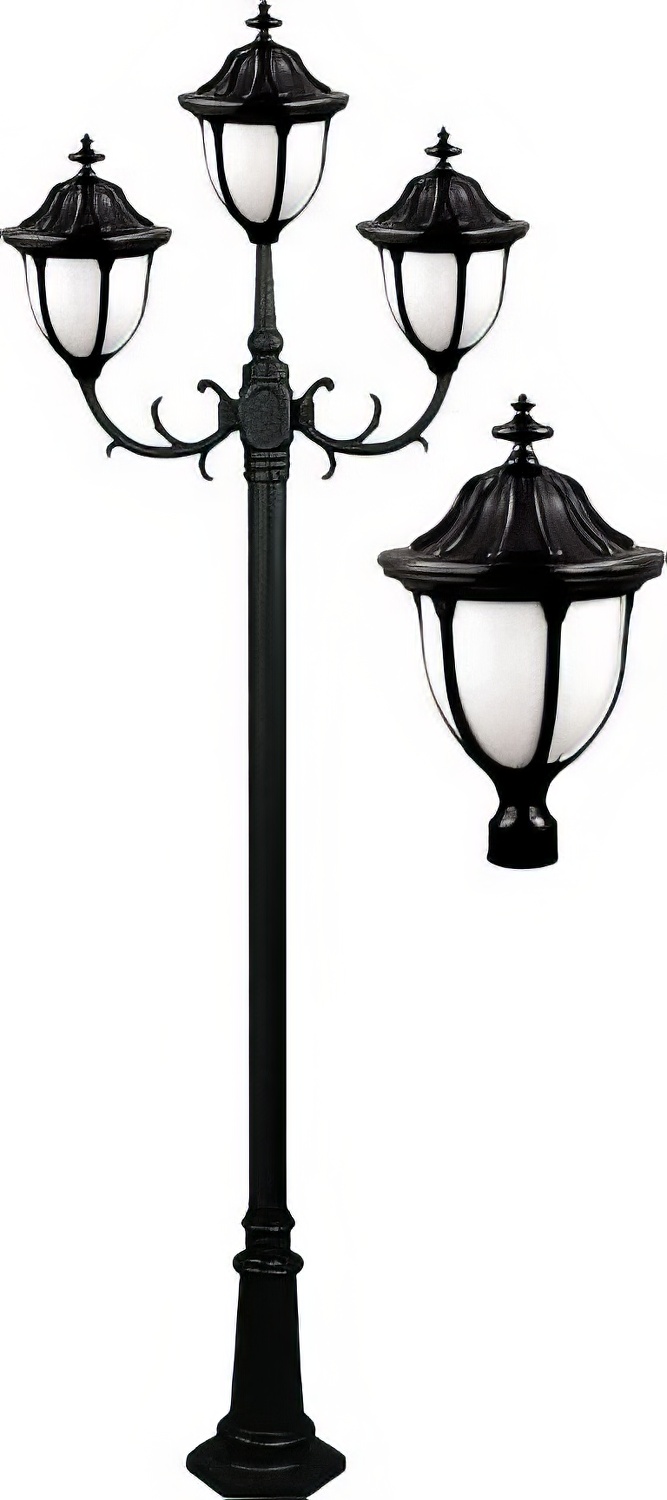 Dabmar Lighting GM5523-L54-30K Cast Alum 3 Post Top Fixture Pole + Base 120V E26 3X LED 18W 30K