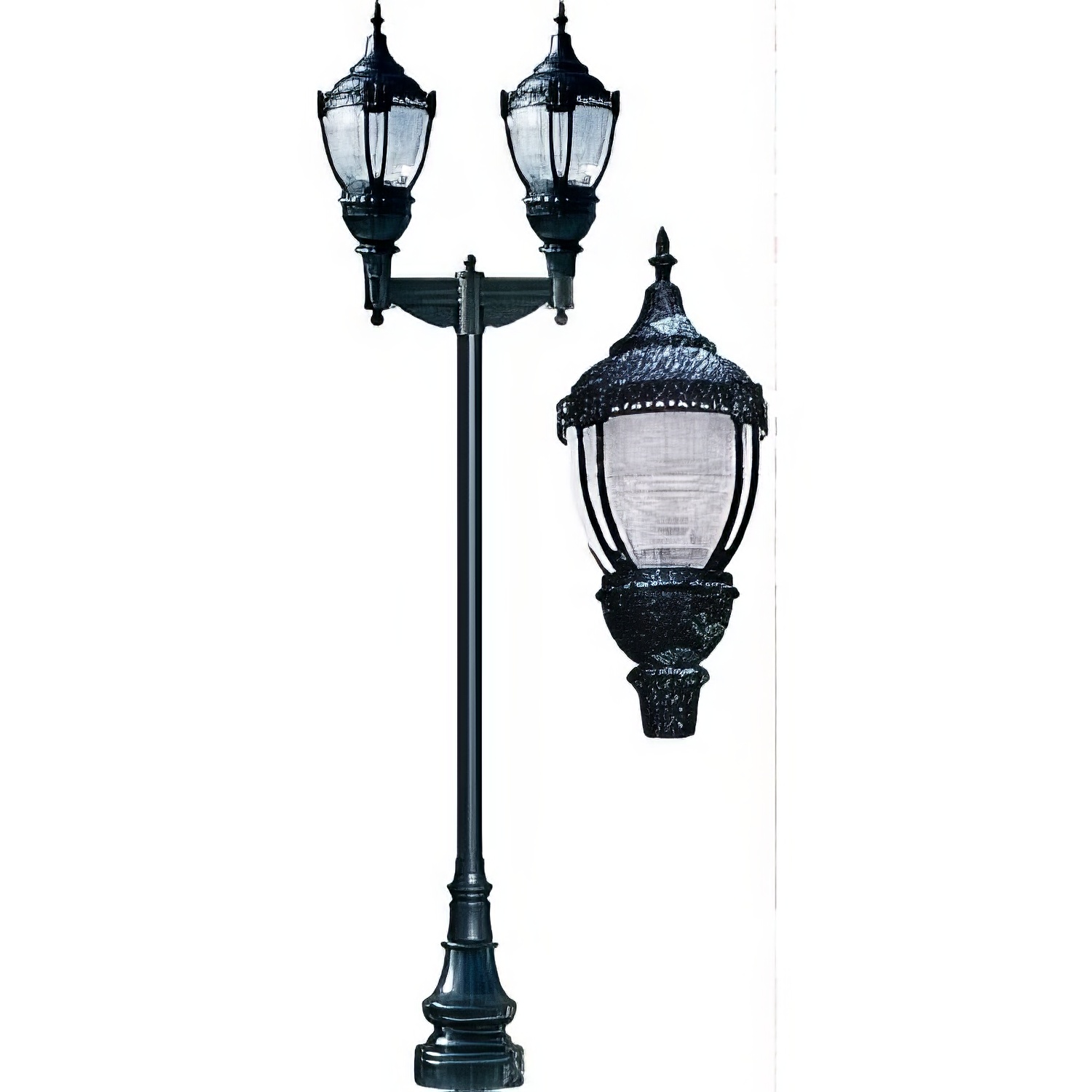 - Durable Cast Aluminum Construction (Pole, and Fixture) Fiberglass Base
