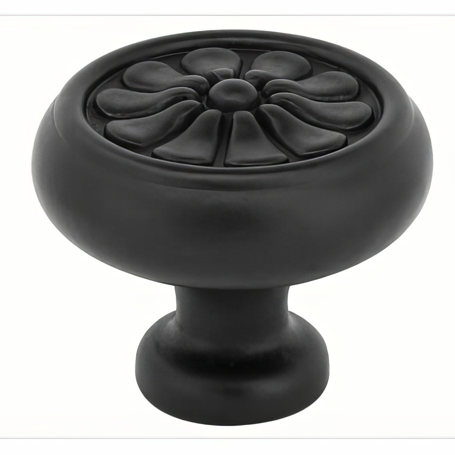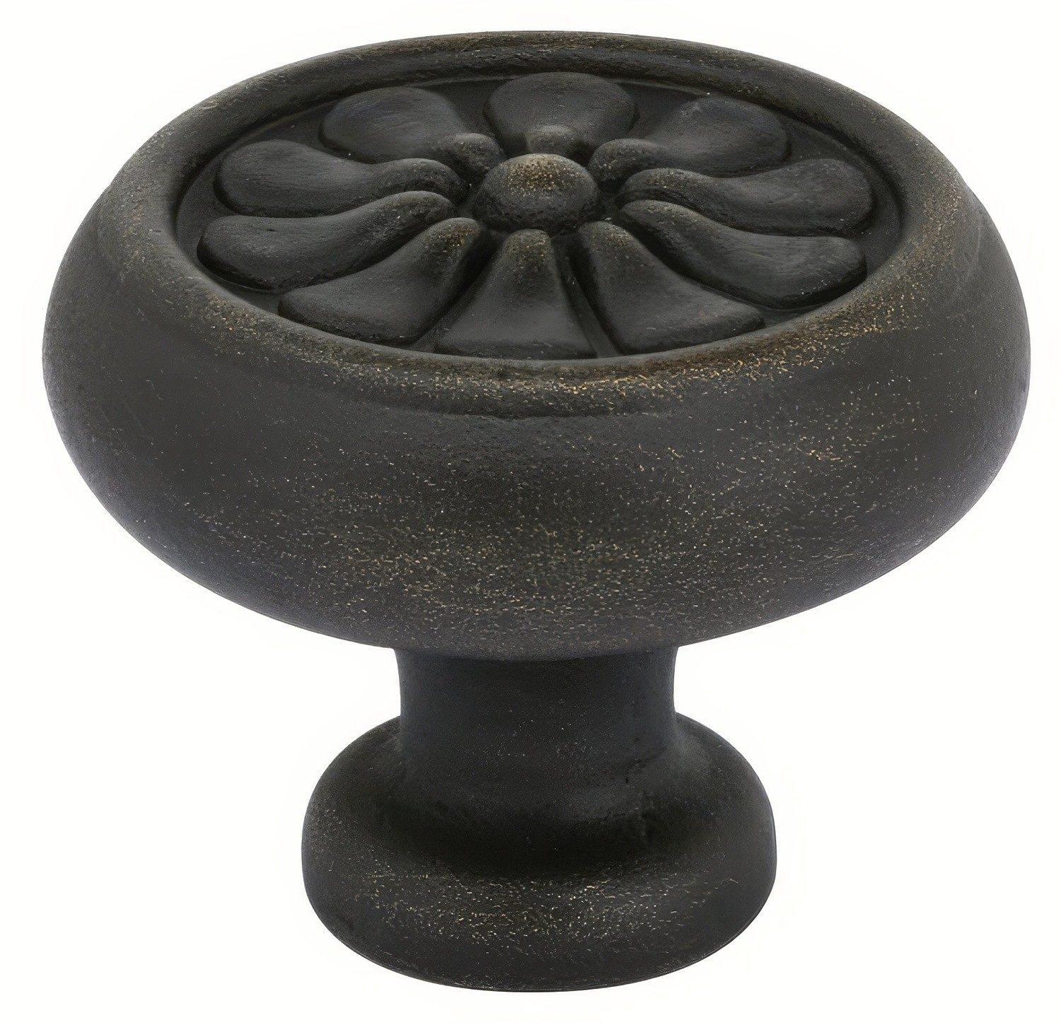 The Emtek Petal cabinet knob has a classic flower on a mushroom knob. The case bronze construction offers durability and a weighted sturdy feel unlike many with a lighter zinc die cast construction.