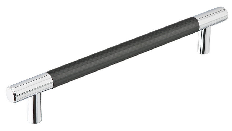 This Black Carbon Fiber Cabinet pull is a new and exciting design that is unique to Emtek. Available in popular finishes such as Polished Chrome and Satin Nickel and either Silver or Black carbon fiber, this Cabinet pull is sure to give the versatility needed to fit any decor. The distinguished design and solid brass construction is both beautiful and durable.