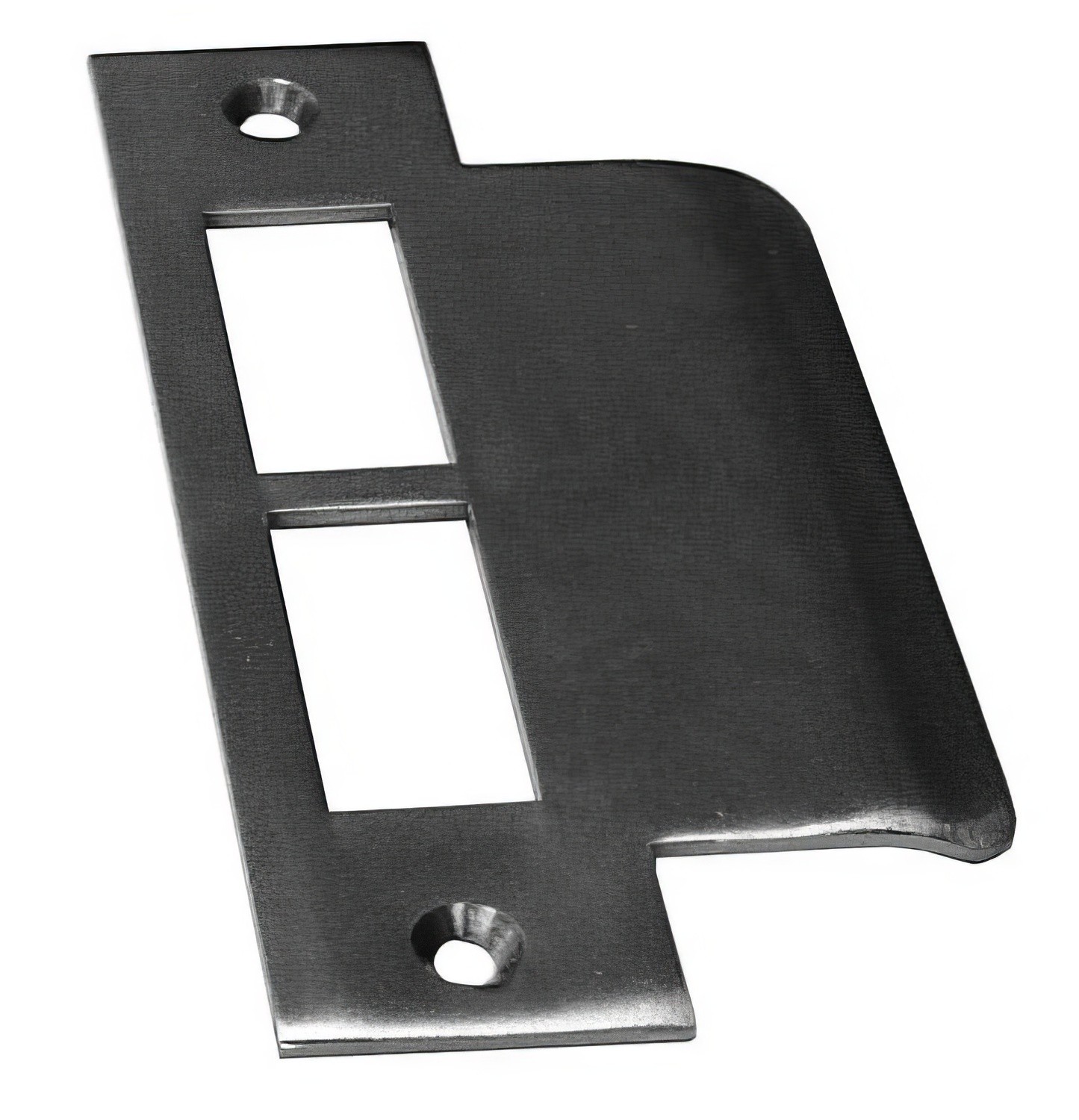 This standard strikeplate for a mortise lockset includes understrikeplate and screws.