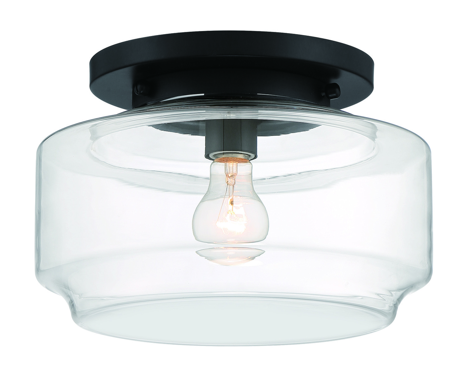 The Peri Collection by Craftmade, inspired by classic schoolhouse lights, features a wide clear glass globe in a familiar yet updated shape. Finished in your choice of brushed polished nickel, flat black or satin brass, these flushmounts are available in 12" and 14" diameter and each uses a single 60W medium base bulb.