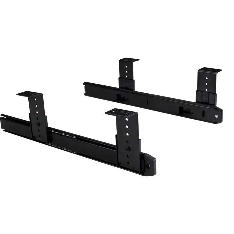 Variable height range of 2" - 3-7/8" in 7/16" increments Heavy duty cold rolled steel construction with black powder coat finish Keyboard slide built onto a 14" ball bearing slide with 11-1/4" tray extension #8 x 3/4" pan washer head screw recommended for installation