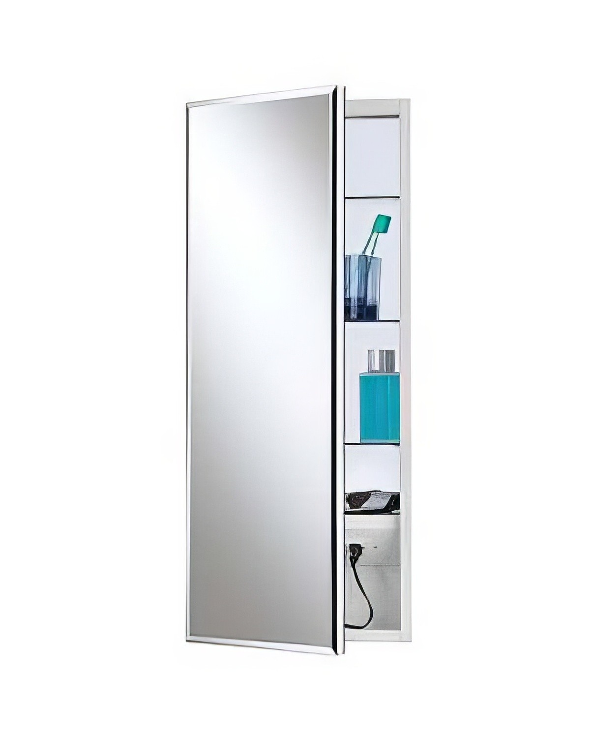 Whether you have traditional, contemporary or classic style, the Meridian frameless cabinet will complement and enhance your bath or powder room. Flexible mounting options ensure this cabinet will fit easily into the space you have planned. The beautiful, polished glass mirror guarantees a flawless reflection for many years to come. An internal electrical outlet, located near the bottom of the cabinet, allows you to keep your shaver, curling iron or toothbrush plugged in and ready to go! Items can rest on the floor of the cabinet to continue charging.