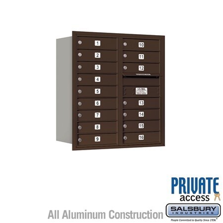 Salsbury 4C Horizontal Mailbox 9 Door High Unit 34 Inches Double Column 16 MB1 Doors Rear Loading Private Access