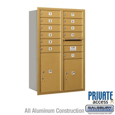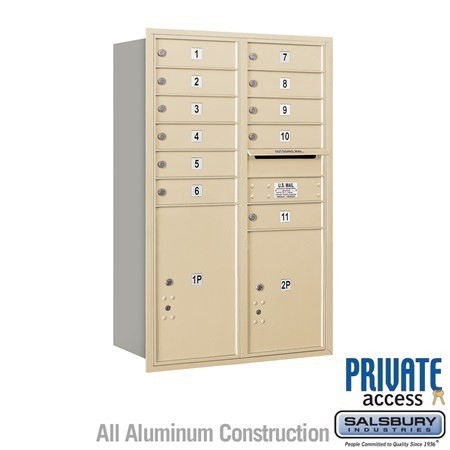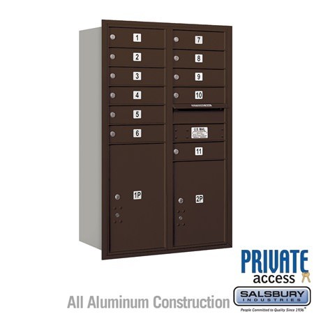 Salsbury 4C Horizontal Mailbox 12 Door High Unit 44 1/2 Inches Double Column 11 MB1 Doors / 1 PL5 and 1 PL6 Rear Loading Private Access