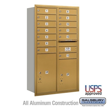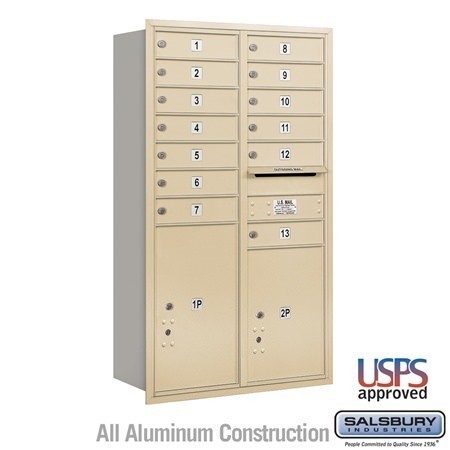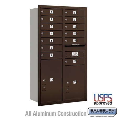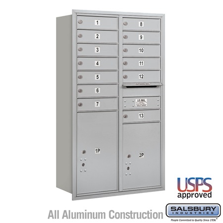 Salsbury 4C Horizontal Mailbox 13 Door High Unit 48 Inches Double Column 13 MB1 Doors / 1 PL5 and 1 PL6 Rear Loading USPS Access