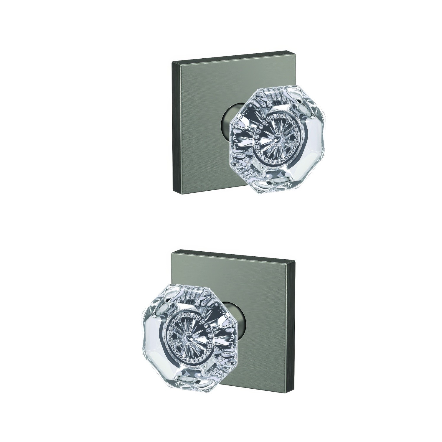 Schlage Custom FC21ALX-COL Alexandria Glass Knob with Collins Rose Passage and Privacy Lock