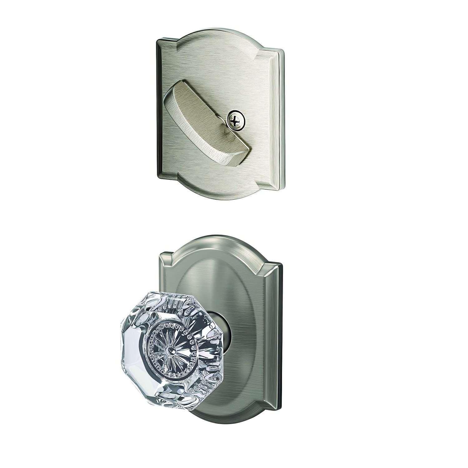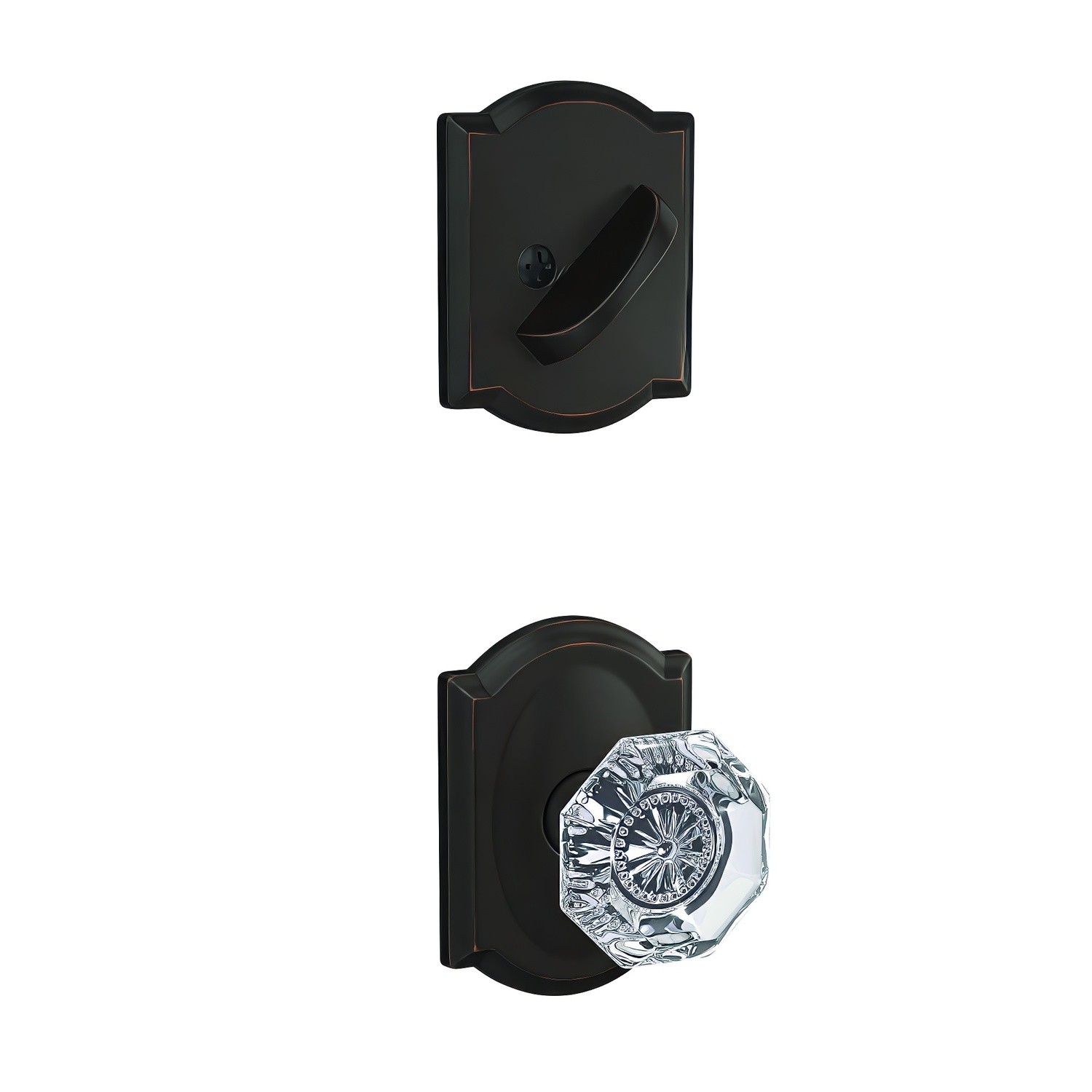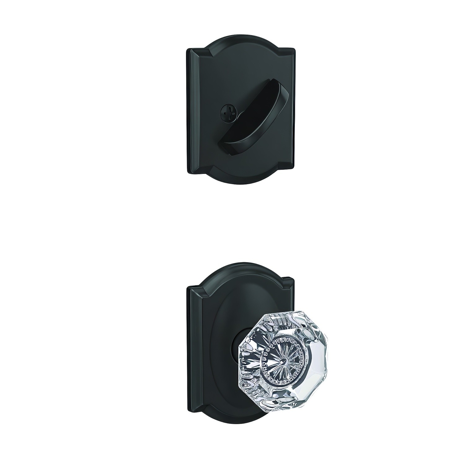 Schlage Custom FC59ALX-CAM Alexandria Glass Knob with Camelot Rose Interior Active Trim
