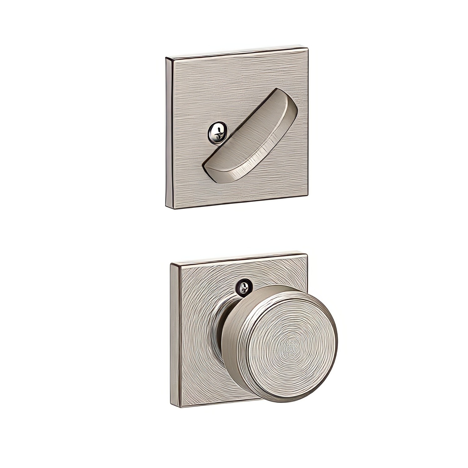 Bowery Knob with Collins Rose Interior Active Handleset Trim Satin Nickel