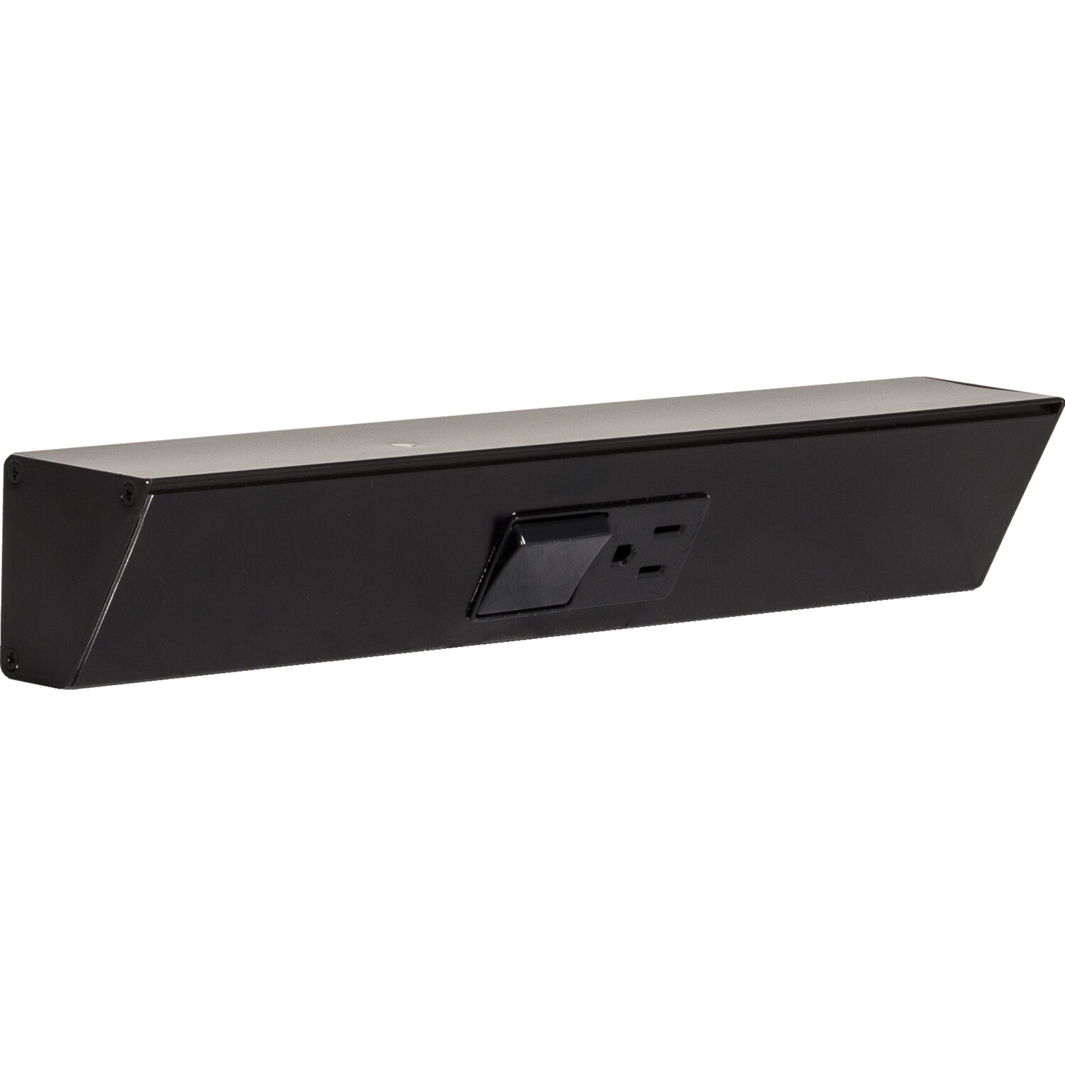 The patented TRS Angle Power Strip mounts under cabinets and countertops and is an ideal alternative to standard outlets that are cut into tile, glass, wood panels, metal and other solid surfaces. The fixture is easily hidden while the angle offers easy access to receptacles. Fixture comes with one 15 amp outlet/single pole switch combo. Use under kitchen cabinets and countertops, vertically along the sides of a bathroom mirror, on the top of an office desk, in the shop, craft room and home entertainment center. Call Design Services at 866-848-9094. Tamper resistant receptacles. Mounting hardware included. Meets 2008 NEC. Requires installation by licensed electrician.