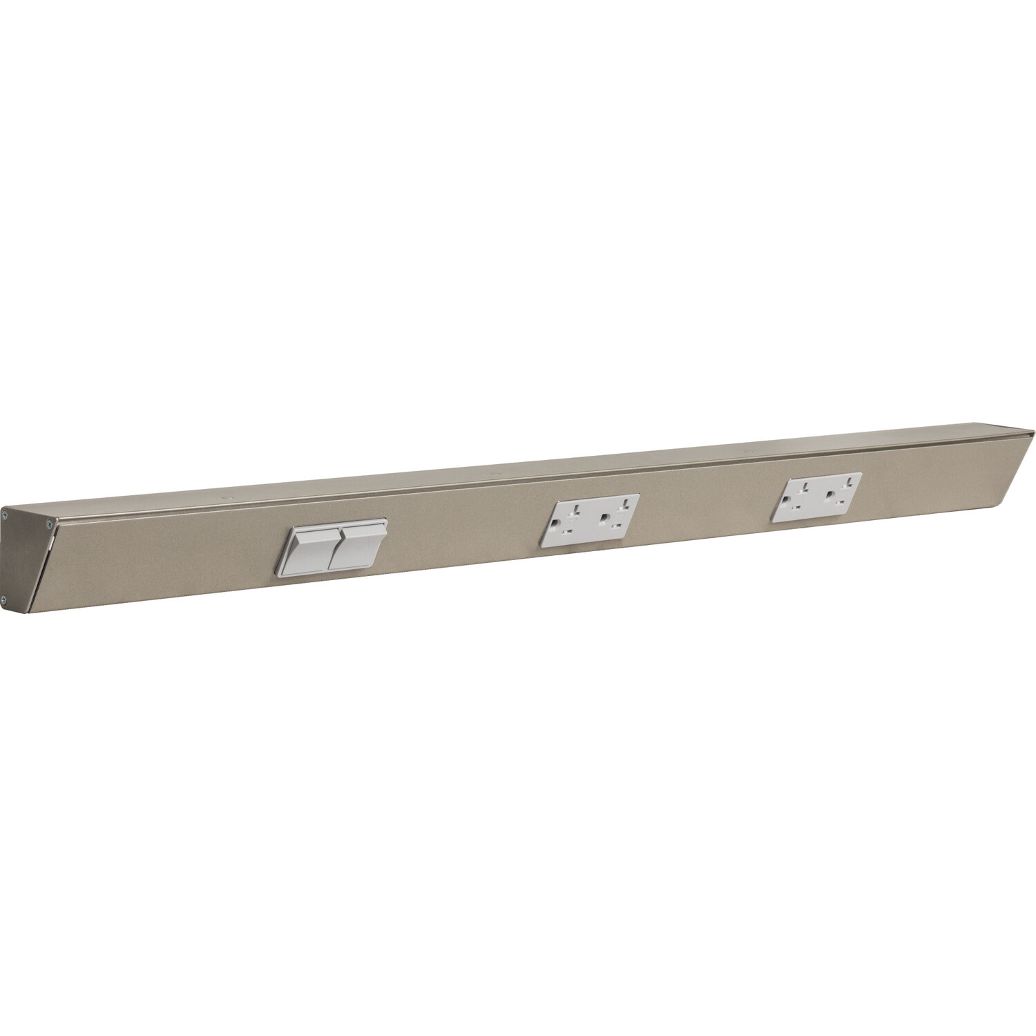 The patented TRS Angle Power Strip mounts under cabinets and countertops and is an ideal alternative to standard outlets that are cut into tile, glass, wood panels, metal and other solid surfaces. The fixture is easily hidden while the angle offers easy access to receptacles. Fixture comes with one dual 15 amp single pole switch. Use under kitchen cabinets and countertops, vertically along the sides of a bathroom mirror, on the top of an office desk, in the shop, craft room and home entertainment center. Call Design Services at 866-848-9094. Tamper resistant receptacles. Mounting hardware included. Meets 2008 NEC. Requires installation by licensed electrician.