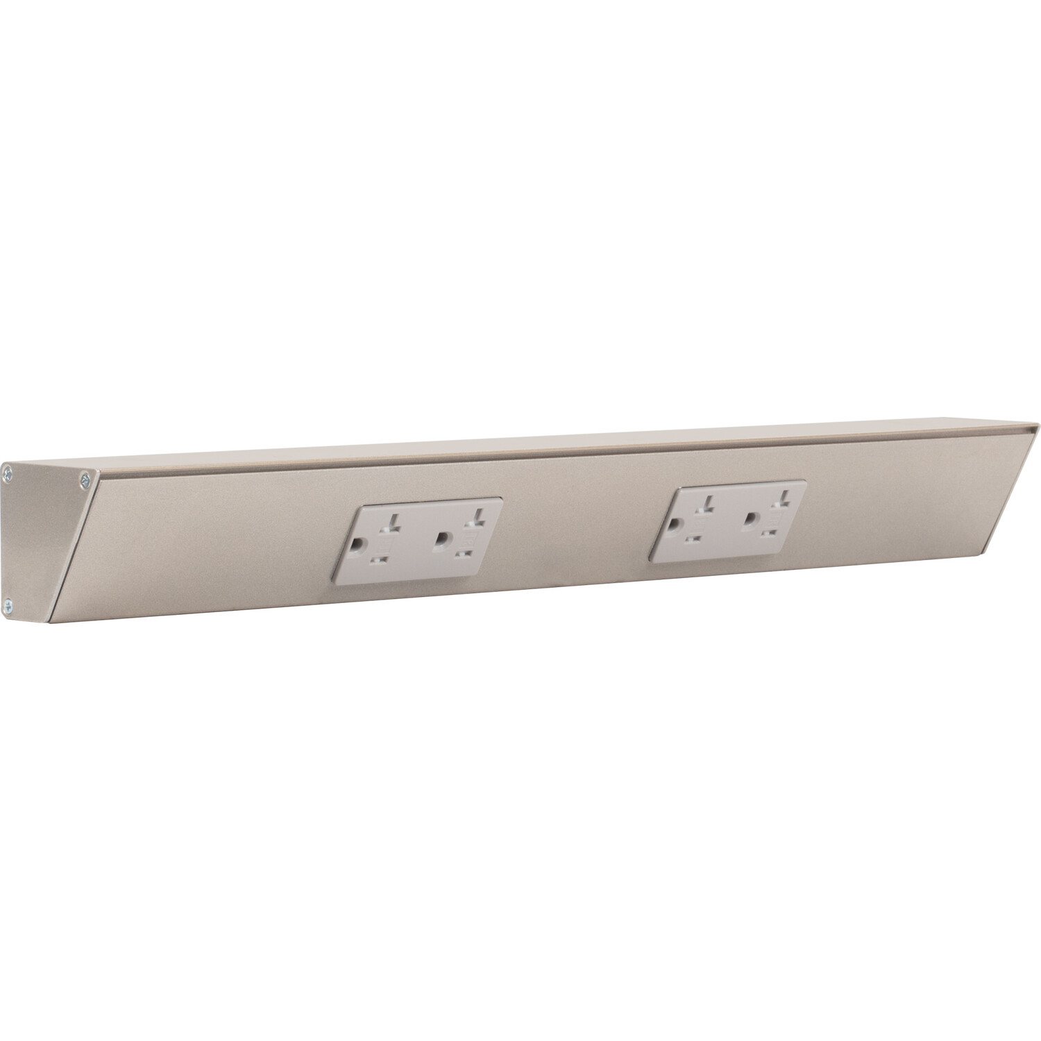 The patented TR Angle Power Strip mounts under cabinets and countertops and is an ideal alternative to standard outlets that are cut into tile, glass, wood panels, metal and other solid surfaces. The fixture is easily hidden while the angle offers easy access to receptacles. Use in the kitchen, bathroom, office, shop, craft room and home entertainment center. Custom options include length, additional receptacles, data devices, and switches for lights and garbage disposal.Tamper resistant receptacles. Meets 2008 NEC. Mounting hardware included. Requires installation by licensed electrician.